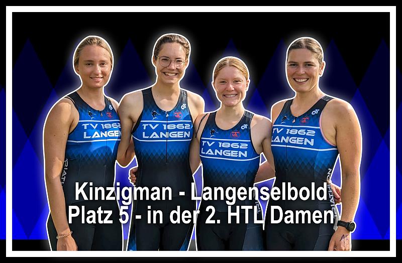 Vergangenen Samstag stand für die Damenmannschaft der zweite Ligastart beim Kinzigman Triathlon in Langenslbold an. Laut Wetterbericht sollte es mit 27 Grad der erste Sommertag im Jahr werden, wodurch die Vorfreude nochmals stieg. Nachdem die Startunterlagen abgeholt wurden und die Wechselzone fertig eingerichtet war, stieg die Spannung denn es stand noch die Entscheidung des Veranstalters in Bezug auf die Neoprenpflicht aus. Der Kinzigsee hatte zu dem Zeitpunkt eine Temperatur von ca. 18 Grad. Bedeutet: Keine Neoprenpflicht. Entgegen der meisten anderen Teilnehmenden entschied sich das Team dafür keinen Neoprenanzug anzuziehen, um einen Vorteil beim Wechsel aufs Rad zu haben. Startpfiff war um 9:45. Nachdem alle die 500m im Kinzigsee absolviert haben, gelang der Wechsel aufs Rad bei allen gut. Die 20km kurze Radstrecke führte die Teilnehmenden von Langenselbold nach Gründau und wieder zurück. Im Anschluss stand noch der 5km Lauf im Bereich des Badesees an. Dieser musste über 4 Runden mit je 1,25 km absolviert werden. Die Strecke bestand sowohl aus Asphalt als auch aus unebener Grasfläche, weshalb teilweise Tempo rausgenommen werden musste, um Verletzungsfrei ins Ziel zu kommen. Alle vier meisterten die Strecke.