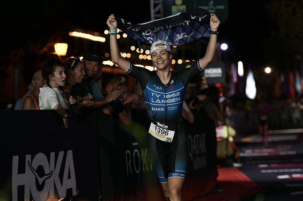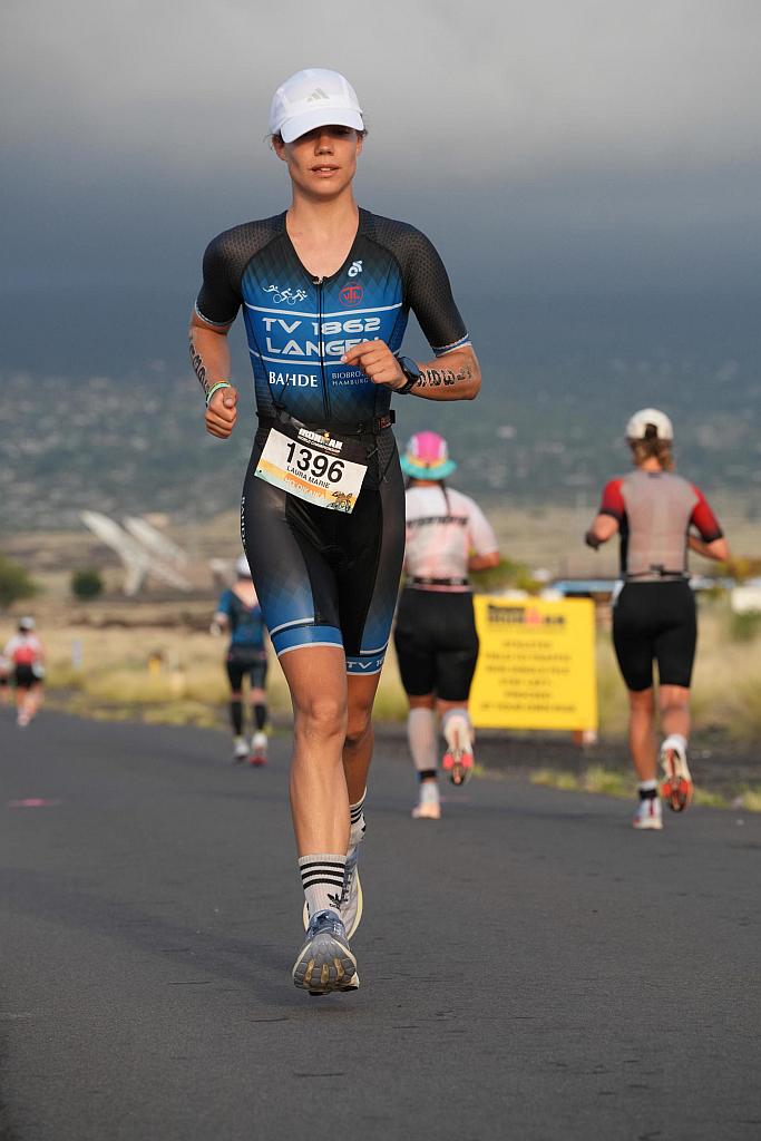 Beine. Als dann aber der Anstieg nach Hawi kam, änderte sich meine Stimmung. Es wurde immer heißer, wir hatten nur Gegenwind und der Anstieg nahm kein Ende. Bei jeder Verpflegungsstation versuchte ich, mich mit Wasser herunterzukühlen. Ich war wirklich froh, als ich am Wendepunkt ankam. Aber auch auf dem Rückweg hatten wir hauptsächlich Gegenwind oder Seitenwind. Das hat meine Motivation ordentlich gemindert. An den Verpflegungsstationen nahm ich irgendwann nicht mehr nur Wasser, sondern auch Cola. Das war nötig, damit meine Motivation nicht ganz verloren ging. Mit dem Wind hatte ich wirklich zu kämpfen. Aber ich war froh, dass ich keinen Platten hatte. An der Strecke habe ich leider ziemlich viele Mädels mit einem Defekt gesehen. Als ich in der Wechselzone ankam, wusste ich, dass ich es ins Ziel schaffen kann, denn auf das Laufen freue ich mich immer am meisten und es liegt mir auch am besten. Am Streckenrand entdeckte ich auch endlich wieder meine Familie. Das gab mir neue Motivation. Die ersten 10 km läuft man auf dem Ali’i Drive. Ich hatte richtig Spaß dabei und versuchte, nicht zu überpacen. An der Palani Road stand wieder meine Familie, die mich lautstark anfeuerte. Voller Freude blieb mir nichts anderes übrig, als den Berg hochzulaufen und nicht zu gehen, so wie es die meisten Athletinnen um mich herum getan haben. Mit vollem Herzen ging es nun auf den Highway und immer nur gerade aus. Alle 1,6 km gab es eine Verpflegungsstation. Jedes Mal schüttete ich mir so viel Wasser wie möglich über den Kopf, trank Cola und Iso und steckte zum Schluss noch ganz viel Eis in meinen Einteiler. Die Volunteers waren wirklich super und haben uns zugejubelt als wären wir die Profis. Nach 22 km ging es in das berühmte Energy Lab. Dort hatte ich beim Laufen zum ersten Mal mental zu kämpfen, weil die Strecke im Energy Lab einfach kein Ende nahm. Als ich dann endlich den Wendepunkt erreicht hatte, bekam ich neue Motivation. Bis km 35 ging es mir wirklich erstaunlich gut. Dann fiel es mir plötzlich schwer nach den Verpflegungsstationen wieder loszulaufen. Der Marathon nahm irgendwie kein Ende. Ich musste mich extrem motivieren und mit mir selber reden, dass es nicht mehr weit sei. Als das Ende des Highways in Sicht war und ich nur noch die Palani Road runter musste, bekam ich neue Energie. Wenn man die Palani Road herunterrennt, kann man schon das Ziel hören und hat das Gefühl, in wenigen Augenblicken anzukommen. Dies ist allerdings ein Trugschluss, da man noch einen Schlenker von gut einer Meile laufen muss. In diesem Moment entdeckte ich Silja, die wirklich nochmal zum richtigen Zeitpunkt an der Strecke stand und mich pushte. Als ich dann endlich rechts auf den Ali’i Drive in Richtung Ziel abbiegen konnte, wusste ich, dass ich es geschafft hatte. Den Zieleinlauf habe ich sehr genossen. Nach 11:24:22 h lief ich mit einer TV Langen Flagge durch den Zielbogen. Im Ziel nahmen mich meine Eltern in Empfang, die sich spontan als Finish Line Catcher gemeldet hatten. Es war so schön zu sehen, wie sie sich darüber freuten, dass ich es ins Ziel geschafft habe. Sie waren unglaublich stolz auf mich, was ein sehr schönes Gefühl ist.