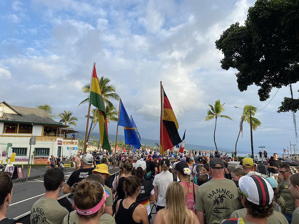 Am Dienstagnachmittag fand die Nationenparade statt. Dabei versammelten sich alle Athletinnen nach Nationen sortiert und gingen gemeinsam über den Ali’i Drive. Die Deutschen stellten mit knapp über 200 Athletinnen die zweitgrößte Nation hinter den USA.