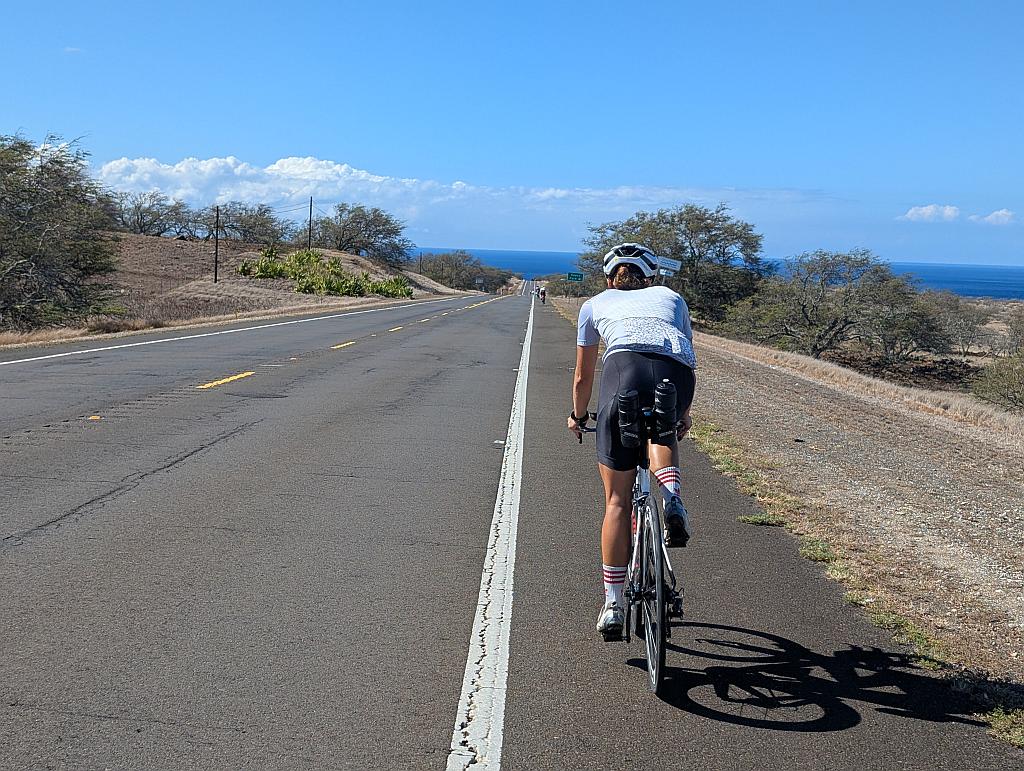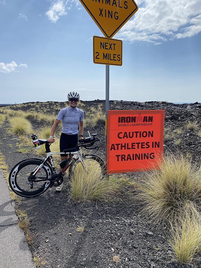 Am 3.10. kamen wir nach einer langen Anreise endlich in Kona an. Überraschend für uns war die hohe Luftfeuchtigkeit, obwohl es bereits spät am Abend war. Vorher konnte ich mir nicht vorstellen, wie hoch die Luftfeuchtigkeit ist. Doch nun bekam ich noch mehr Respekt vor dem Rennen. Mit traditionellen Blumenketten wurden wir von dem Hannes Hawaii Tours Team, mit dem wir die Reise gebucht haben, herzlich begrüßt. Unser Gepäck und zum Glück auch mein Radkoffer kamen unbeschadet am Flughafen an. Hannes brachte uns und die anderen Athletinnen höchstpersönlich in einem großen, amerikanischen Schulbus zu den Hotels. Dort angekommen bauten wir noch schnell mein Rad auf, da am nächsten Morgen direkt eine Ausfahrt anstand. Wir wurden von Hannes Team nach Hawi, dem Wendepunkt der Radstrecke, gefahren. Von dort fuhren wir 90 km nach Kona zurück. Ich bekam einen ersten Eindruck von der Hitze, den extremen Seiten- und Gegenwinden, den Lavafeldern und dem berühmten Highway. Es fühlte sich total unwirklich an, endlich dort trainieren zu dürfen. Ein Koppellauf auf dem Ali´i Drive durfte natürlich auch nicht fehlen. Aufgrund der hohen Luftfeuchtigkeit war ich bereits nach wenigen Minuten nassgeschwitzt. Auch die Höhenmeter waren mehr, als ich es erwartet habe. Aber es war ein unbeschreibliches Gefühl, auf dem Ali´i Drive zu laufen. Nachmittags konnte ich es mir nicht nehmen lassen, eine erste Runde im Meer zu schwimmen, um mich an das Salzwasser zu gewöhnen. Es war einfach herrlich, durch das glasklare Wasser zu schwimmen und die Fische zu beobachten. Den restlichen Tag genossen wir die Atmosphäre in Kona. Auf dem Ali´i Drive sieht man den ganzen Tag über Sportler, die mit ihren High-End-Rädern fahren oder laufen gehen. Das war sehr beeindruckend und motivierend zu sehen.